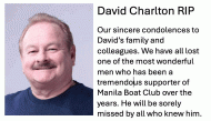 Every now and then we are lucky enough to meet a true gentleman. David was certinly that. He was incredibly generous to the Manila Boat Club and continued to support it even though he was not rowing...